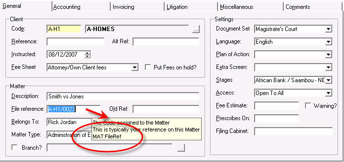 In the above example, MAT:FileRef indicates that this data is stored in the Matter (MAT:) table and its column name is FileRef.